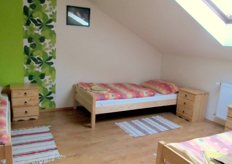 Penzion poskytuje podkrovní apartmány, které Vám nabízí trojlůžkové a pětilůžkové pokoje, které disponují vlastním sociálním zařízením, vybaveným kuchyňským koutem a televizí. V penzionu je možnost WIFI připojení.